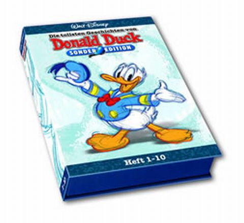 Das Donald Duck Sonderheft erscheint seit 1965 und ist ausschließlich Donalds Abenteuern gewidmet. Für Comic-Fans und Sammler ist es das Maß aller Dinge aus Entenhausen. Zu Recht! Denn in dieser Publikation werden nur die besten Werke der größten Zeichner, Autoren und Übersetzer abgedruckt. Darunter natürlich Carl Barks, der Großmeister des Comics, der Erfinder Entenhausens und zahlloser Charaktere – in kongenialer Zusammenarbeit mit der legendären Chefredakteurin und Übersetzerin Dr. Erika Fuchs. Diese Reihe ist streng limitiert und enthält Faksimiles der ersten 50 Sonderhefte in 5 hochwertigen Sammelboxen